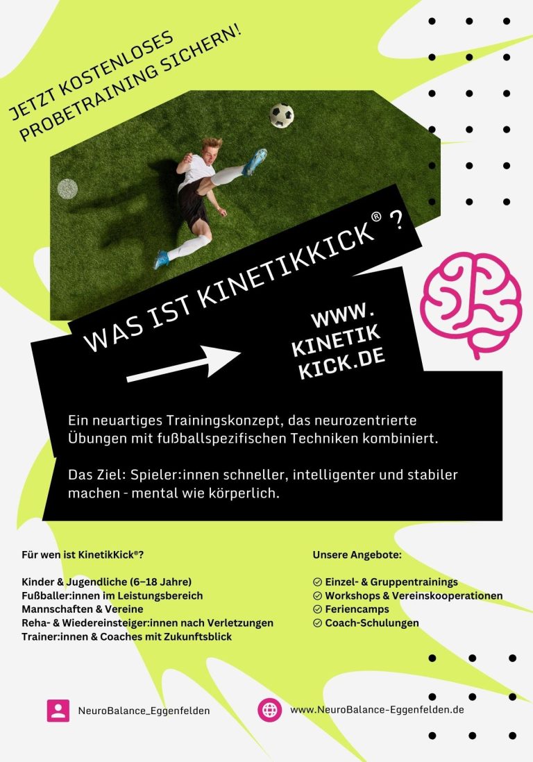 KinetikKick verbindet modernes Neurotraining mit klassischem Fußball – für mehr Spielintelligenz, bessere Entscheidungen und blitzschnelle Reaktionen.